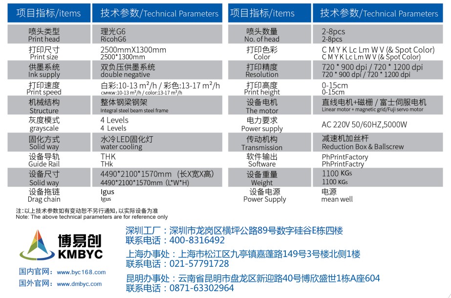 博易創BYC168-2513 G6理光噴頭大型uv平板打印機